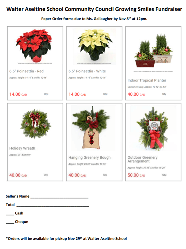 The Walter Aseltine School SCC has decided to start this terrific fundraiser with Growing Smiles back up.